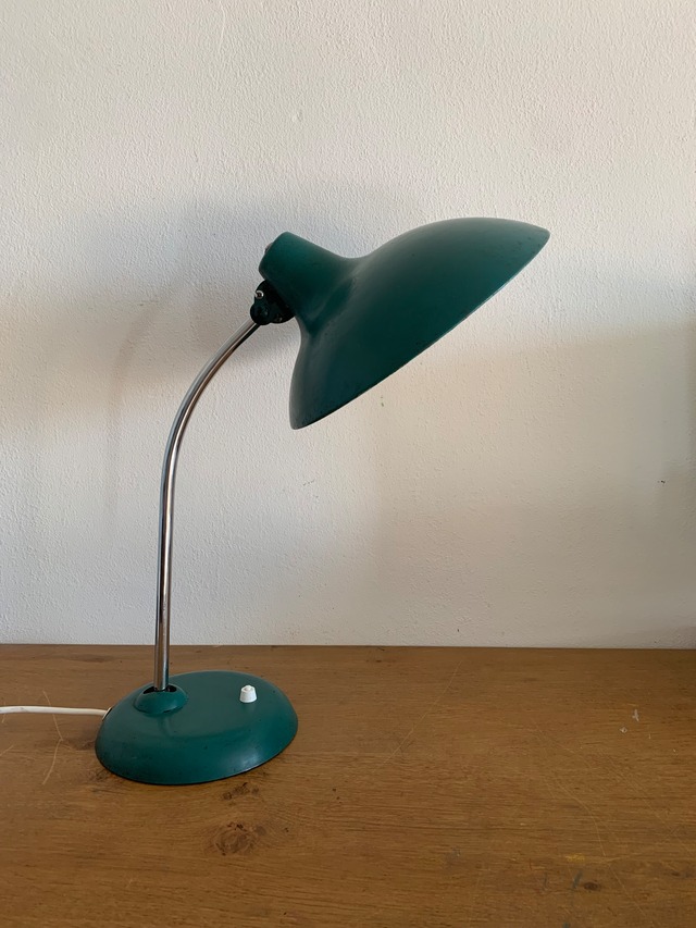 “KAISER idell”シリーズのテーブルスタンド“model 6551”です。 電球は口径26ミリの普通球1灯使用。LED電球も使用可能です。古いモノなので若干色が剥げている箇所や前持ち主が書いたであろう落書きが見られます。 画像にて状態をご確認してください。 洗練されたデザインに機能主義的な要素が融合した、ドイツのデザイン照明を代表する名作です。 シェード径は約15,5cm、高さ約49cmです。 ※コンセントの形状はヨーロッパ仕様になっております。