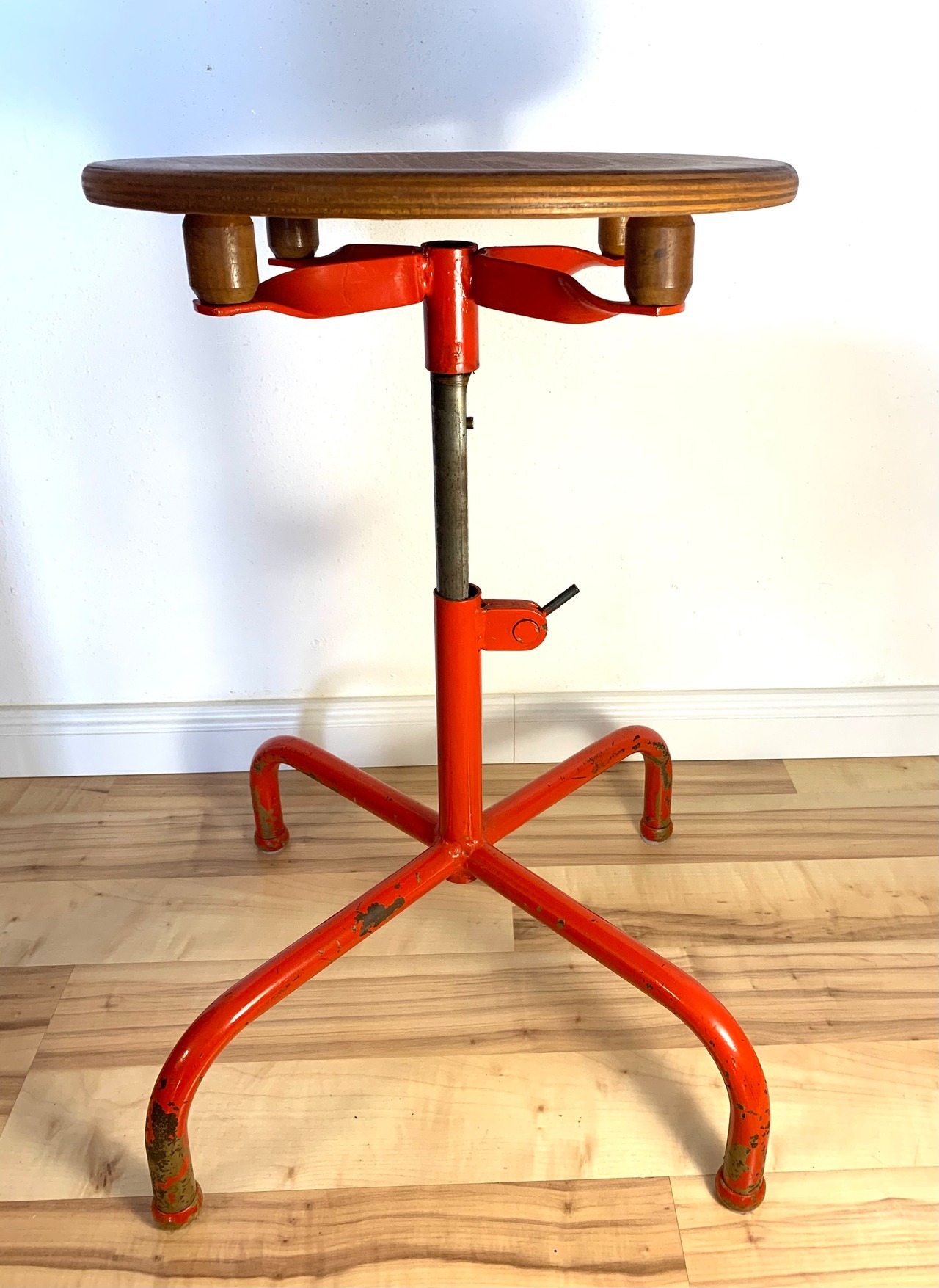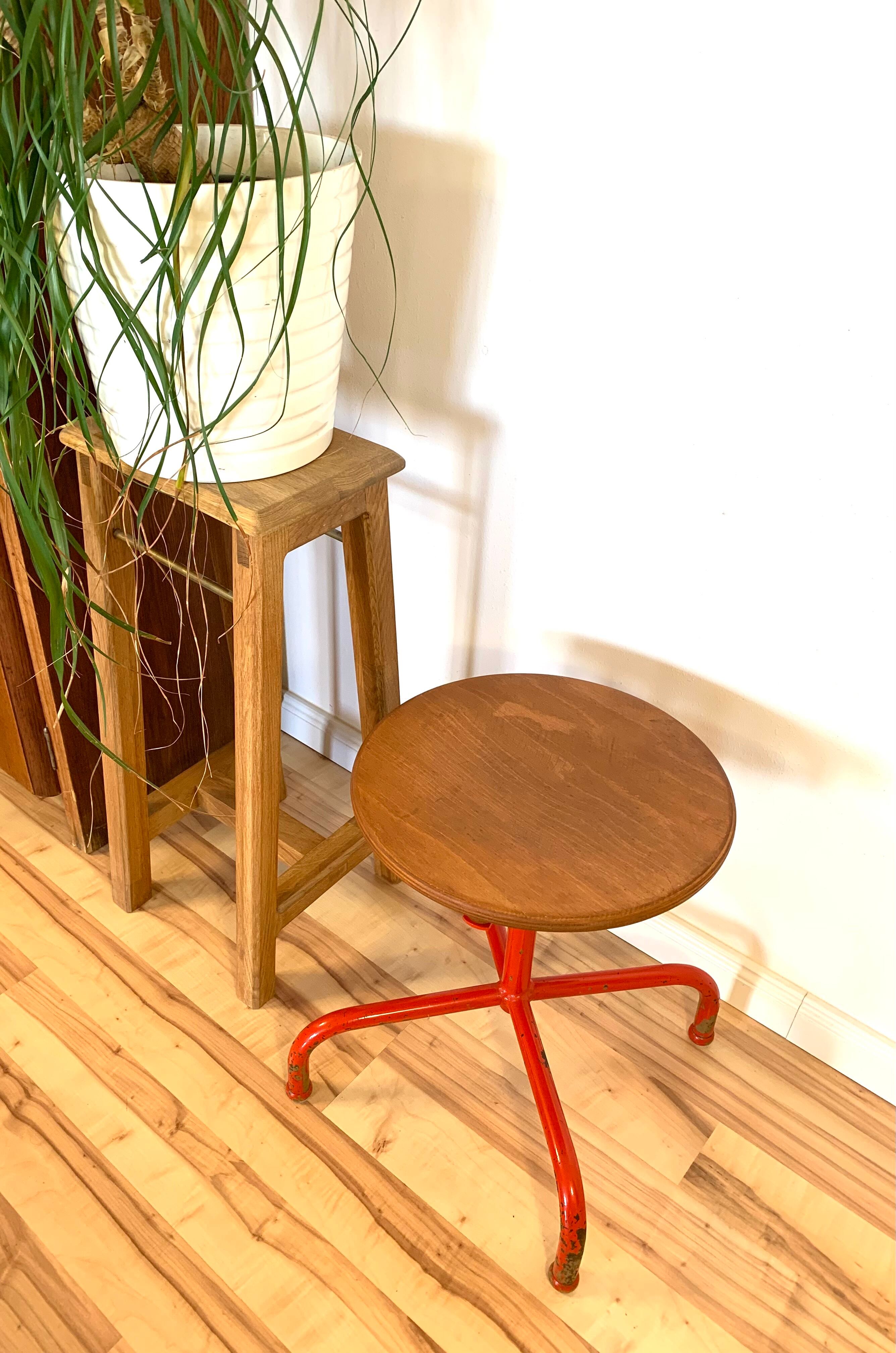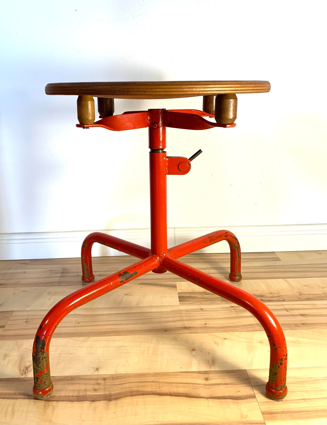 人気のあるヴィンテージインダストリアルスツールが入荷しました。1970年代頃のモノで赤い脚がとても特徴的です。ヴィンテージ特有の雰囲気を持ちつつも機能面では高さの調節が可能で、座面も回転式になっております。