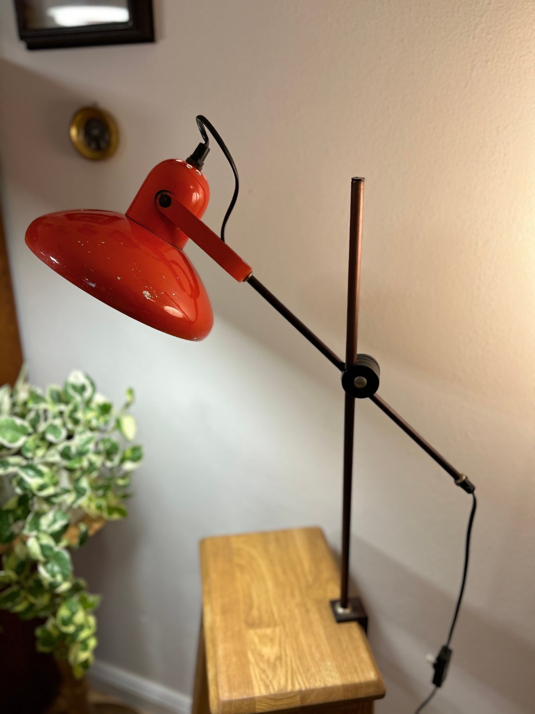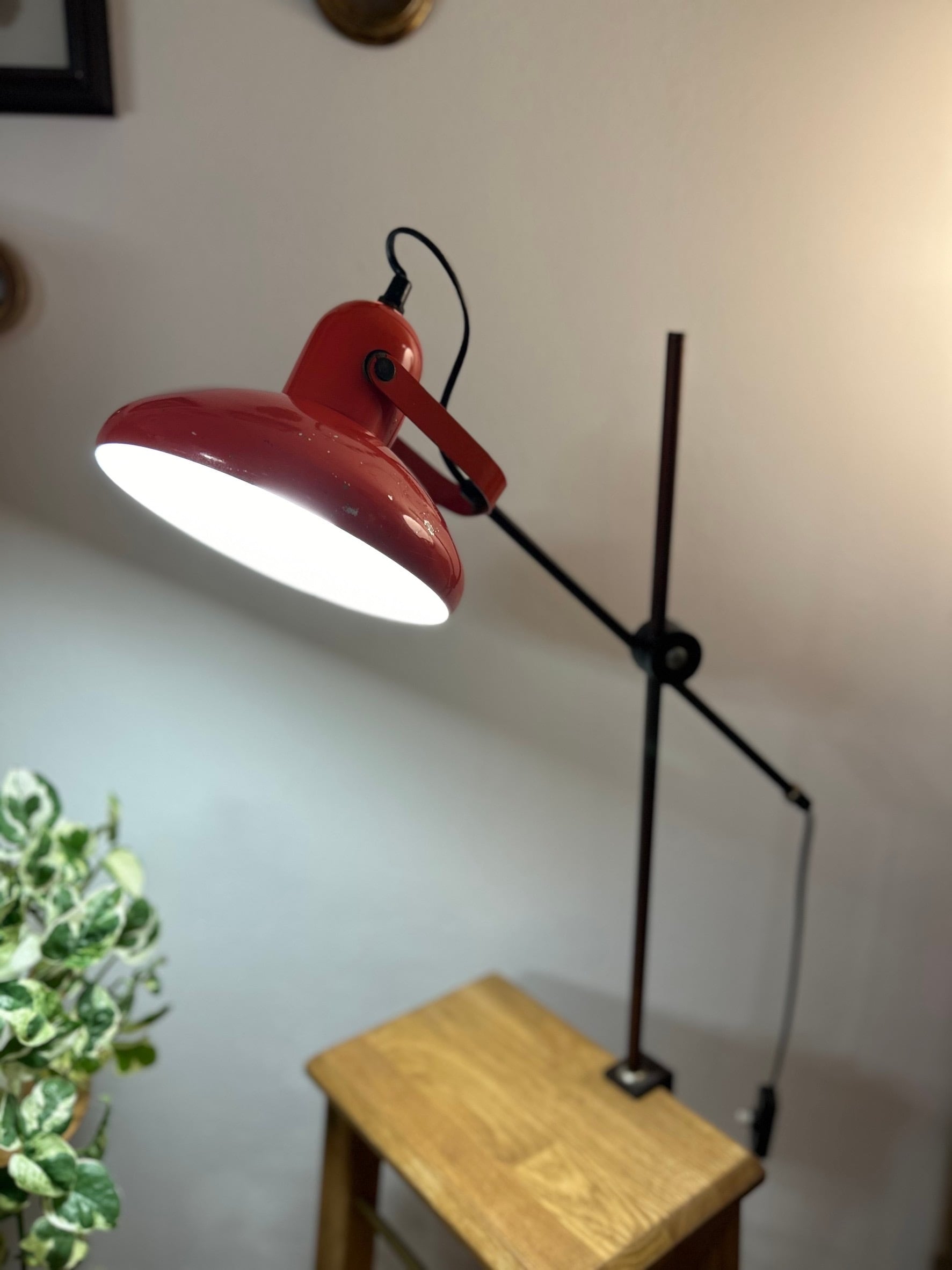 鮮やかな赤色がオシャレな1970年代ヴィンテージライト。2箇所での角度調整が可能になっております。