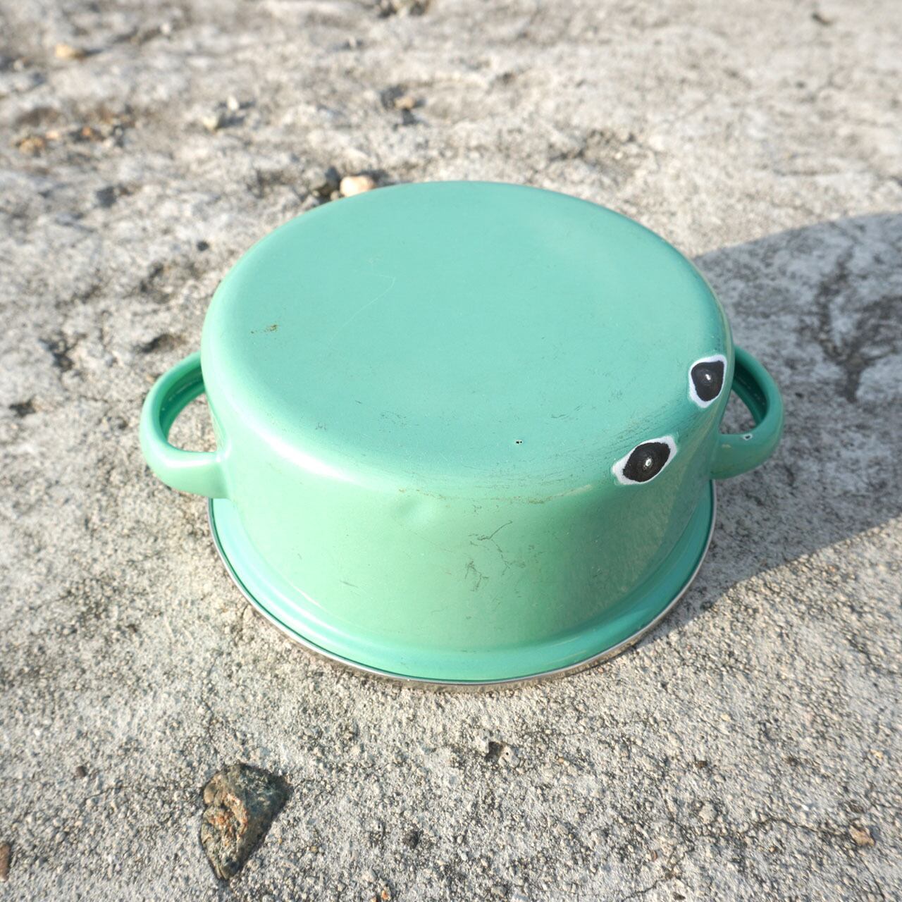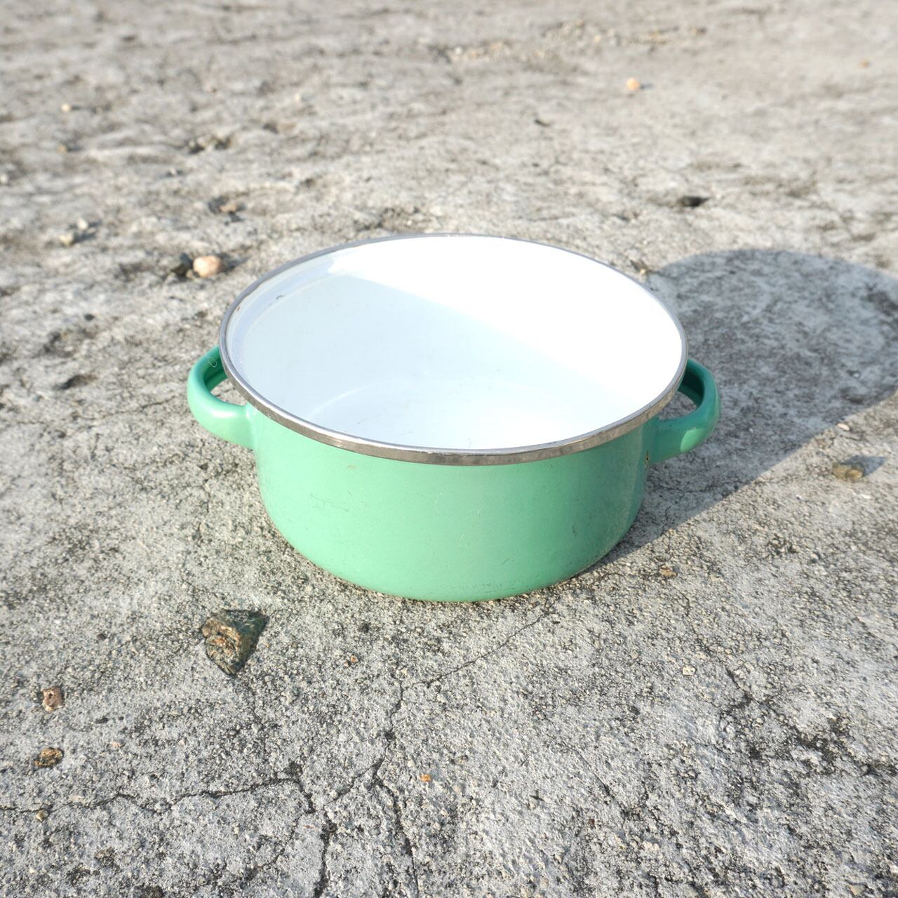 ヴィンテージホーローの鍋、ヴィンテージスタイル好きのキャンパーにぴったりなアイテムです。鮮やかなターコイズブルーの色合いが目を引く一品。キャンプやアウトドア料理を楽しむ方には、まさにおすすめのアイテムとなっております。