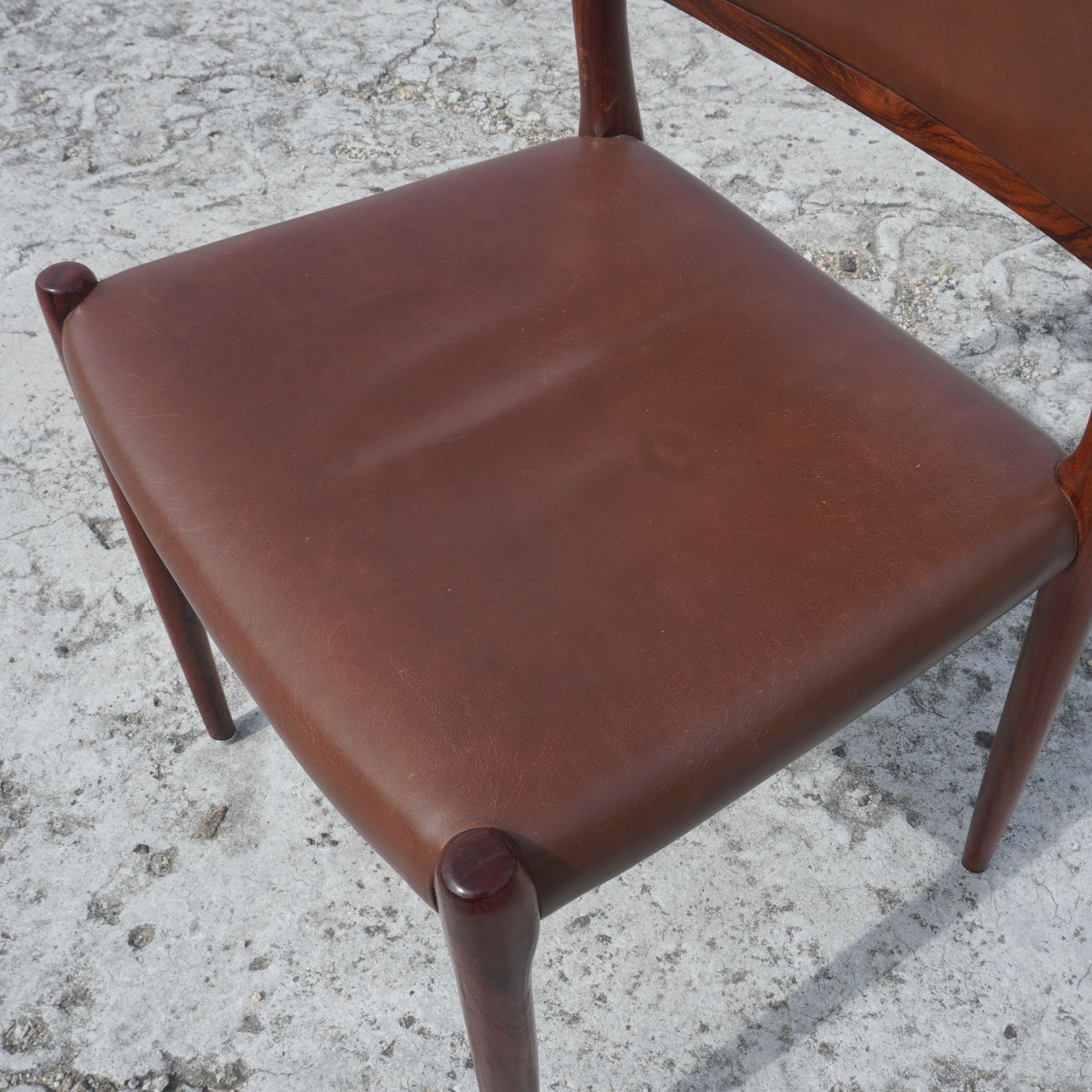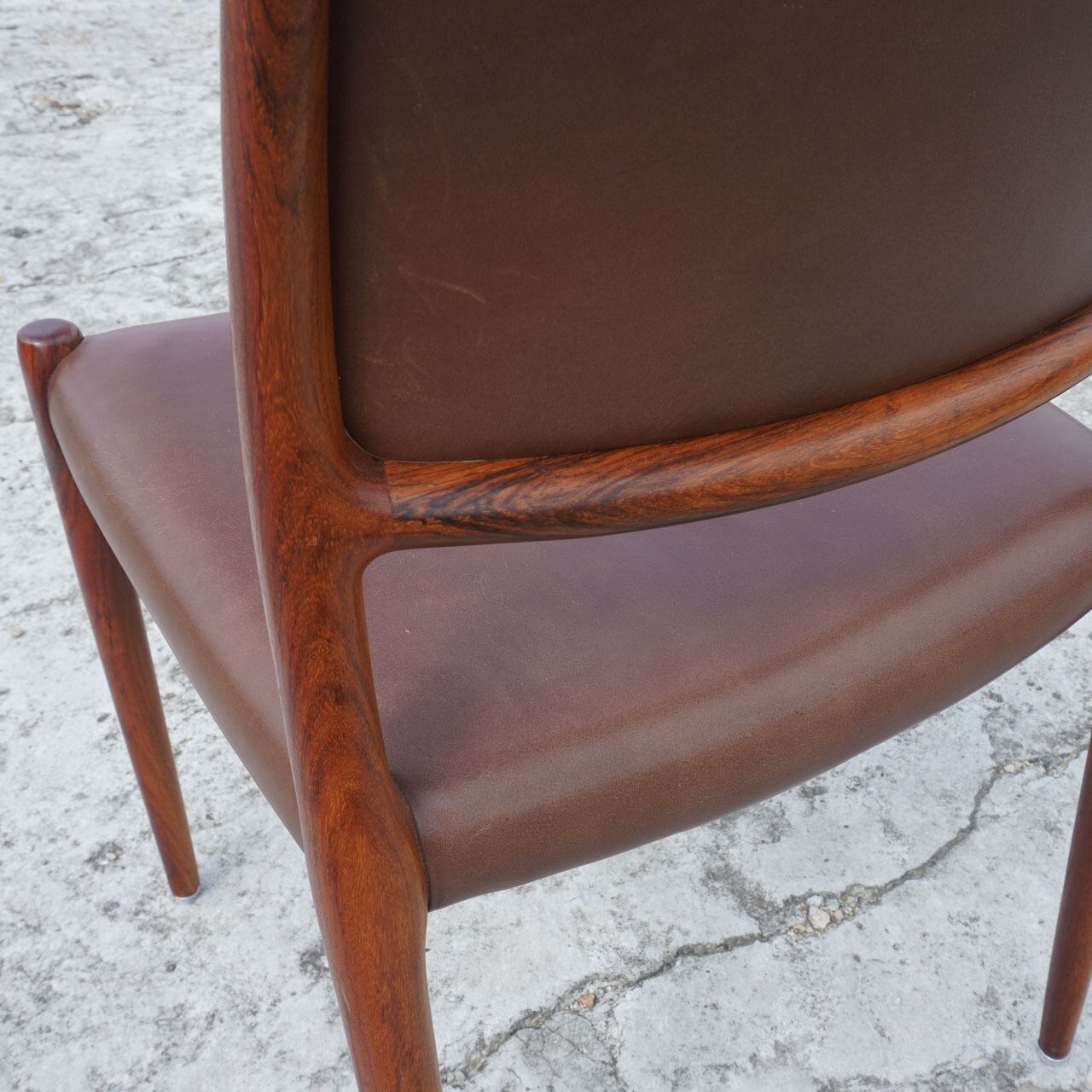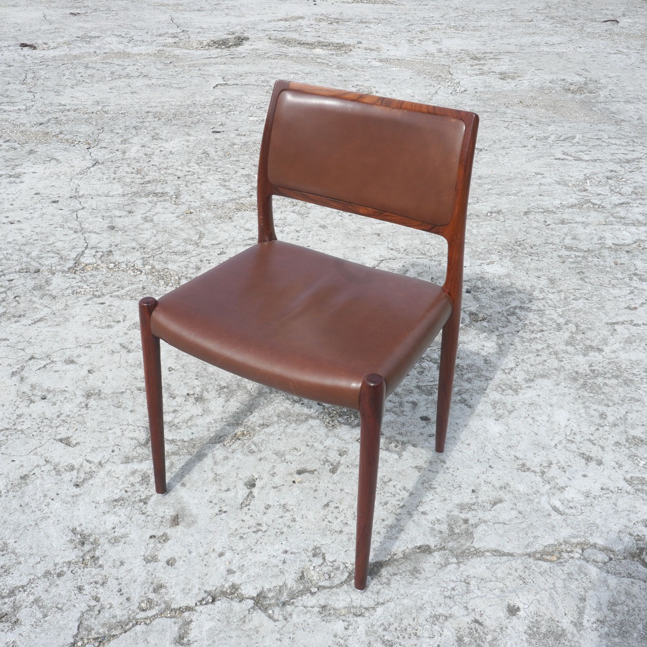 デンマークのデザイナーニールスモーラー。この椅子は数多いモーラーのプロダクトの中でも最高傑作と言われているNO.80。工業技術を巧みに取り入れることで、大量生産と低コスト化を実現。