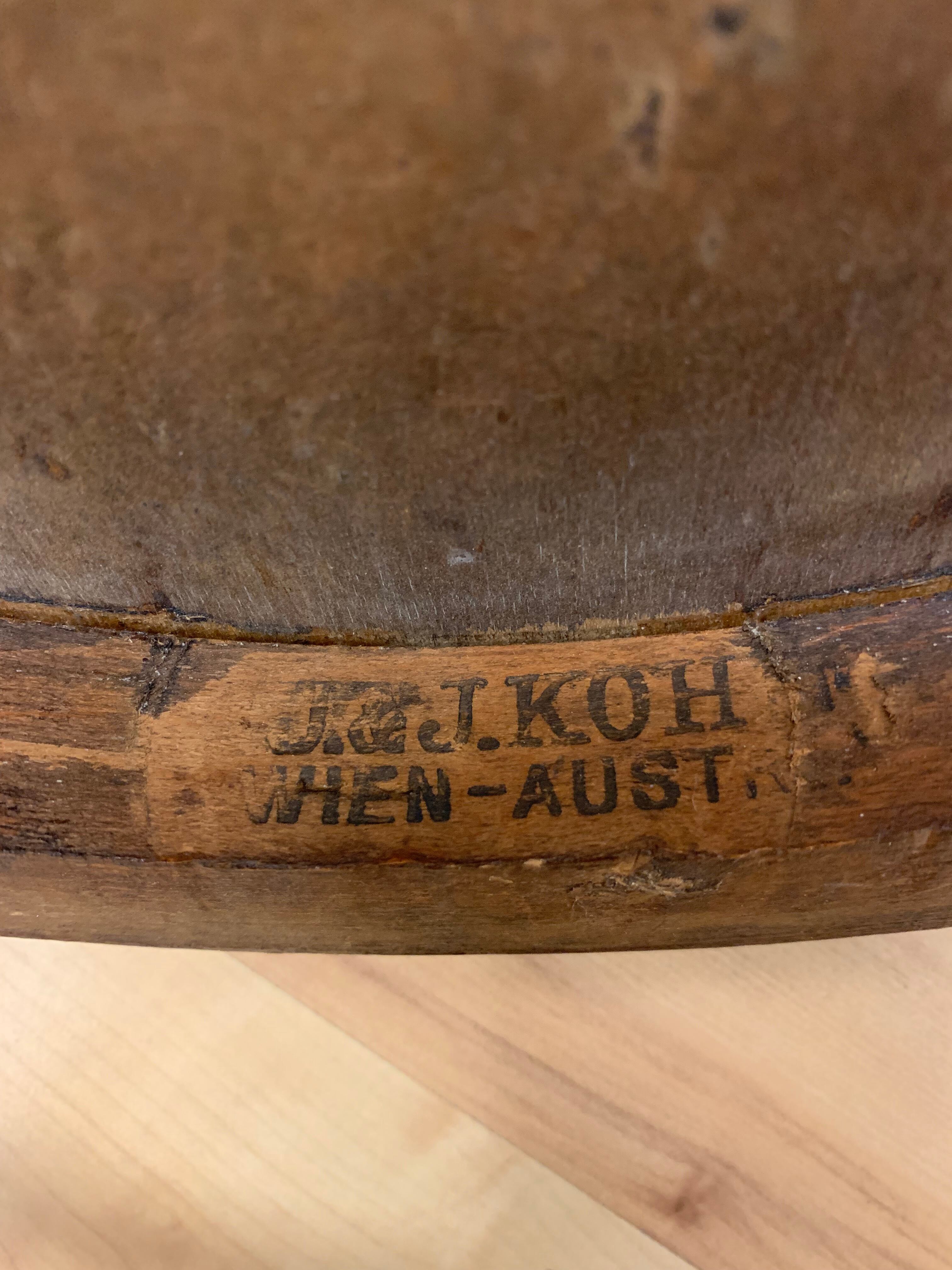 正式名称はJacob and Josef Kohn(ヤコブ・ヨゼフ・コーン)社と呼び、ジェイコブ・コーンと息子のヨセフ・コーンが、1849年に設立した企業となります。 当時、オーストリアやハンガリーの主要な家具メーカーを担っており、現在ではニューヨークの近代美術館をはじめ、多くの博物館で彼らの作品を見ることができます。 1914年、Mundus社を吸収し「Mundus and J.J.Kohn」となり、THONET社の一番の競合他社となっておりました。J.J kohn社のプロダクトでも更に数の少ないメイドイン、オーストリアの価値ある1脚です。